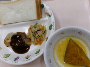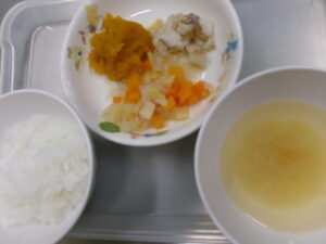 9月26日なでしこキッチン 2025年9月29日 <本日の献立> ◌たらのソース焼き ◌いそ和え ◌かぼちゃのうま煮 ふっくら焼き上げた鱈は、ソースをかけることでご飯の進む1品でした! かぼちゃがホクホクで甘く、秋の訪れを感じられました(*^-^*) 季節の恵みを楽しめる献立です(*’▽’) <本日の離乳食> ◌かぼちゃのうま煮 ◌たらの煮物 ◌やさいのやわらか煮 ◌みそ汁